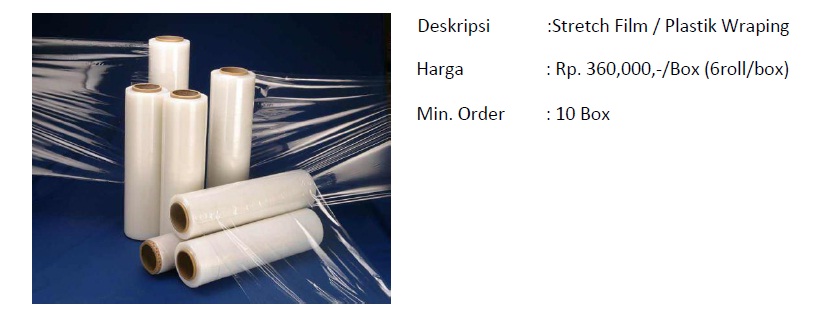 Plastic wrapping untuk membungkus paket/barang anda di gudang atau ketika dalam pengiriman jarak jauh agar tetap bebas debu, tidak basah, dan rapih.